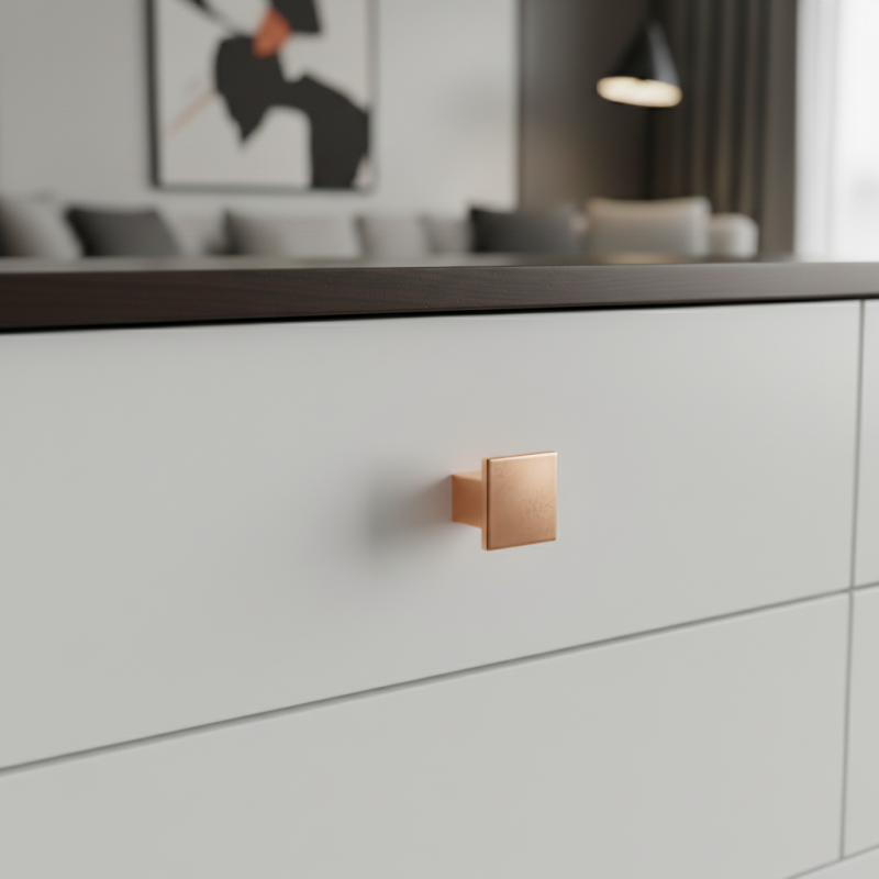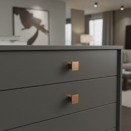 Úchytka knopka AXON v štýlovom medenóm prevedení je výnimočným dizajnovým detailom, ktorý dodá nábytku teplý a elegantný nádych. Medený odtieň pôsobí moderným, no zároveň prírodným dojmom a skvelo ladí s drevom, antracitovými tónmi či minimalistickými svetlými plochami. Hranatý tvar úchytky podčiarkuje čisté línie nábytku a zabezpečuje pohodlné používanie v každodennom prostredí.