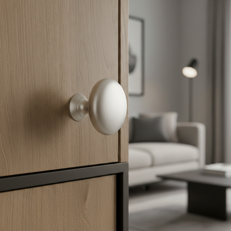 Knopka BEA v matnom chrómovom prevedení je elegantný a univerzálny doplnok, ktorý dodá nábytku moderný, čistý a nadčasový vzhľad. Matný chróm pôsobí veľmi sofistikovane, je menej náchylný na odtlačky a perfektne ladí so svetlým aj tmavým nábytkom.