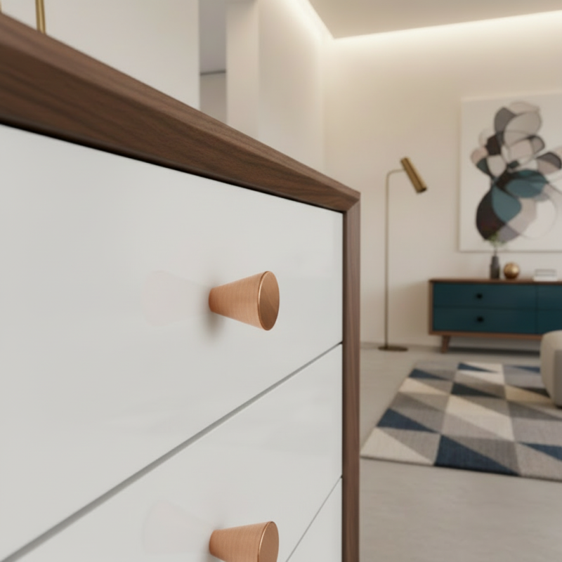 Štýlová nábytková knopka MANGO v povrchovej úprave meď prinesie do interiéru teplý, elegantný a originálny akcent. Kónický tvar zabezpečuje pohodlné uchopenie a univerzálny dizajn sa hodí k modernému aj rustikálnemu nábytku.