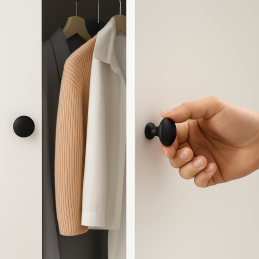 Vďaka svojmu minimalistickému tvaru a čiernemu matnému prevedeniu sa hodí do moderného, industriálneho aj rustikálneho interiéru, kde dodá nábytku luxusný a nadčasový vzhľad.