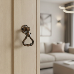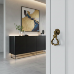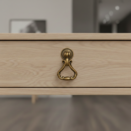 Štýlová rustikálna úchytka typu knopka CORTINA v staromosadznom prevedení je ideálnym doplnkom pre klasický a rustikálny nábytok. Jej bohato tvarovaný dizajn s pohyblivým spodným úchopom dodáva nábytku autentický historický charakter a eleganciu.