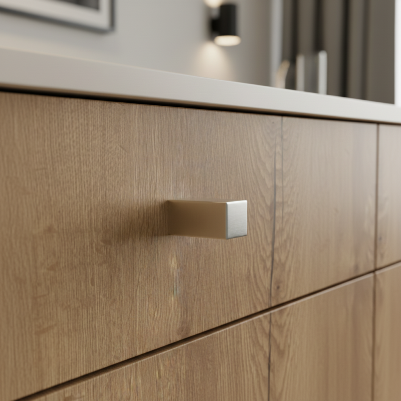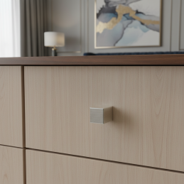 Knopka BLOCK v prevedení hliník je ideálnou voľbou pre moderný interiér, kde dominujú jednoduché línie, funkčnosť a nadčasová estetika. Jej dokonale pravidelný hranolový tvar podčiarkuje minimalistický charakter nábytku a pôsobí elegantne, technicky a profesionálne.