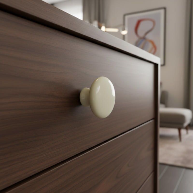 Knopka FRAGILE v prevedení biely porcelán je nadčasovým a univerzálnym doplnkom, ktorý skvele zapadne do moderných aj klasických interiérov. Hladký porcelánový povrch pôsobí jemne, luxusne a dodáva nábytku čistý estetický vzhľad.