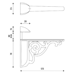 Elegantný rustikálny držiak poličky so zdobeným kovovým motívom, ktorý dodá interiéru tradičný, romantický a remeselný vzhľad. Vďaka pevnému kovovému prevedeniu je vhodný do kuchyne, obývačky, predsiene či vidieckeho štýlu bývania.