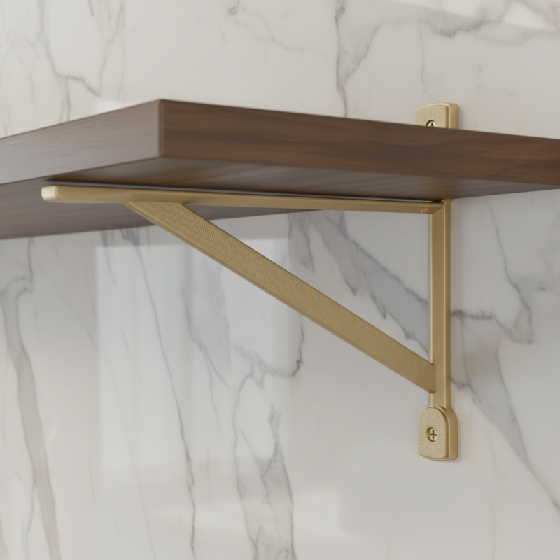 Držiak ZAIRA v elegantnom prevedení zlatá matná je štýlovým dizajnovým prvkom pre moderné interiéry. Vďaka svojmu precíznemu kovovému spracovaniu, pevnej konštrukcii a minimalistickému tvaru je ideálny na vytváranie odolných a estetických políc v obývačkách, kanceláriách, kuchyniach či spálňach.