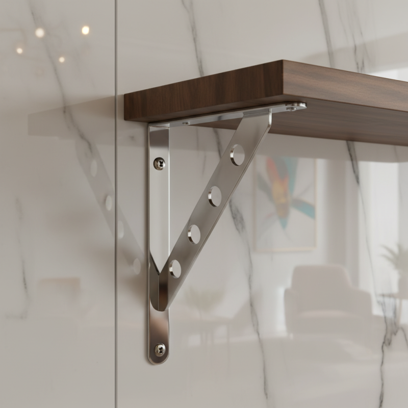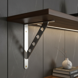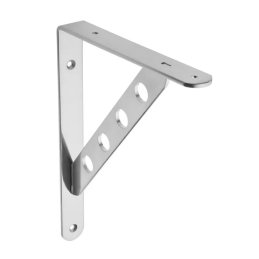 Pevný a vizuálne atraktívny držiak police ROSA v prevedení lesklý chróm je ideálnym riešením pre spoľahlivé upevnenie políc v moderných aj technicky ladených interiéroch. Charakteristickým prvkom je zosilnená diagonálna výstuha s dekoratívnymi otvormi, ktorá dodáva držiaku industriálny vzhľad a zároveň zvyšuje jeho pevnosť.