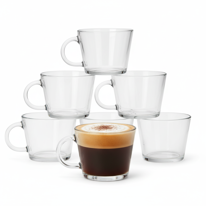Štýlová a praktická sada sklenených šálok VIVALTO je ideálnym riešením pre každodenné podávanie kávy, čaju, kakaa, ale aj studených nápojov. Ich jednoduchý, čistý a nadčasový dizajn sa hodí do každej domácnosti, kancelárie či gastro prevádzky.