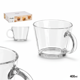 Šálky sú vyrobené z kvalitného transparentného skla, ktoré je odolné a ľahko sa udržiava. Pohodlné uško zabezpečuje bezpečné a komfortné uchopenie aj pri horúcich nápojoch. Vďaka objemu 400 ml sú ideálne nielen na veľkú kávu, ale aj na latte, čaj, cappuccino či obľúbené domáce nápoje.