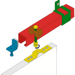 Koliesko je vybavené mechanizmom na výškovú rektifikáciu, ktorý sa nastavuje pomocou skrutky – vďaka tomu je možné jednoducho prispôsobiť výšku dverí a vyrovnať ich polohu pri montáži.