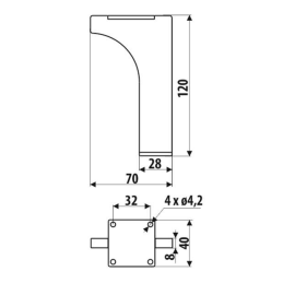 Montážna platnička 40 × 40 mm – umožňuje pevné uchytenie k nábytku.