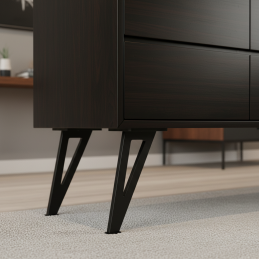 Dizajnová nožička JAPAN v modernom prevedení čierna matná je ideálnou voľbou pre komody, skrinky, TV stolíky či minimalistické nábytkové zostavy. Jej výrazný tvar inšpirovaný japonskou estetikou pôsobí elegantne, subtílne a zároveň dodáva nábytku stabilitu a ľahkosť.