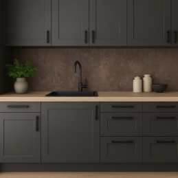 Dodajte svojej kuchyni praktickú ochranu a elegantný vzhľad s našou kuchynskou zástenou vyrobenou z kvalitnej drevotriesky potiahnutej odolným laminátom. Tento materiál sa vyznačuje vysokou odolnosťou voči poškodeniu, mechanickej záťaži a zvýšeným teplotám, čo zaručuje dlhú životnosť aj pri každodennom používaní.