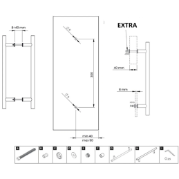 Vďaka priloženým nadstavcom je madlo vhodné pre rôzne hrúbky dverí – od 8 až do 40 mm. Štandardne je určené pre dvere s hrúbkou 8 až 18 mm, ale pomocou nadstavcov, ktoré sú súčasťou balenia, ho možno prispôsobiť aj hrubším dverám.