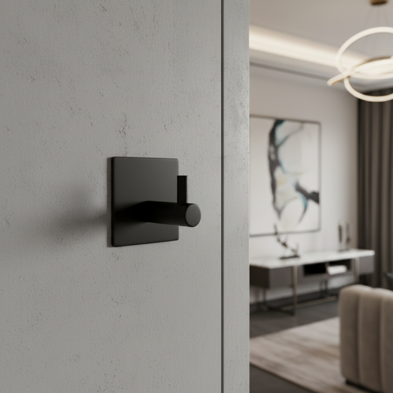 Moderný, jednoduchý a mimoriadne praktický nalepovací vešiak GINNA v elegantnom prevedení čierna matná je skvelou voľbou do kúpeľní, kuchýň či na akýkoľvek hladký povrch v domácnosti. Matná čierna farba pôsobí luxusne a dokonale ladí s modernými interiérmi aj čiernymi kúpeľňovými doplnkami.