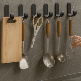 • 🔩 Jednoduchá inštalácia – stačí odstrániť ochrannú fóliu a prilepiť vešiak na čistý, suchý povrch bez potreby vŕtania.