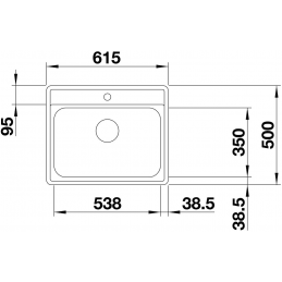 S rozmermi 615 × 500 mm ponúka dostatok priestoru na pohodlné každodenné používanie, pričom absencia odkvapovej plochy zdôrazňuje čistý a nadčasový vzhľad pracovnej dosky.