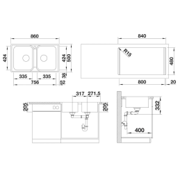 Vonkajšie rozmery drezu: 860 × 500 mm
