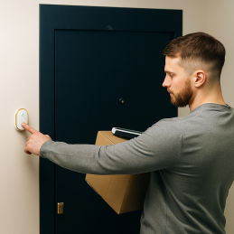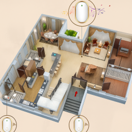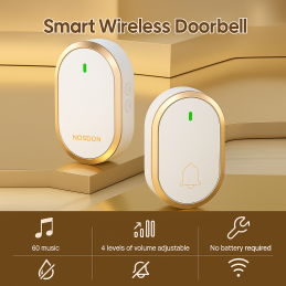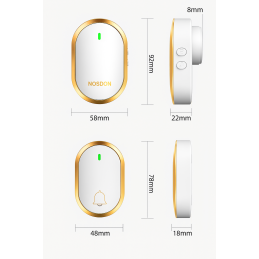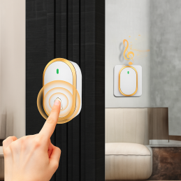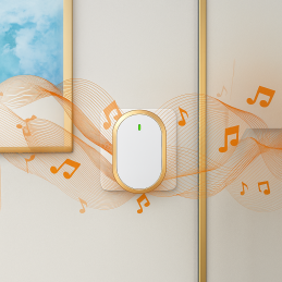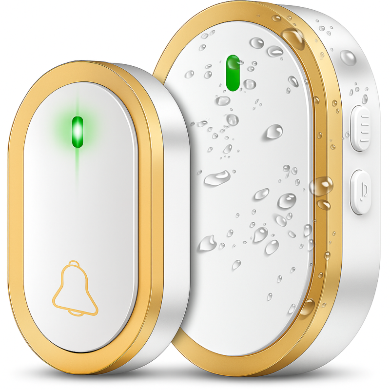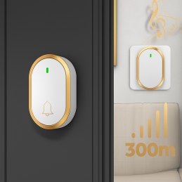 Vďaka vodotesnému tlačidlu s certifikáciou IP44 je vhodný na vonkajšiu montáž, a jeho dosah až 300 metrov v otvorenom priestore umožňuje použitie aj ako zvonček ku bráne alebo garáži.