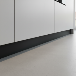 Štýlový a odolný plastový kuchynský sokel PAX v odtieni čierna matná RAL 9005 je ideálnym doplnkom pre moderné kuchynské linky s industriálnym alebo minimalistickým vzhľadom.
