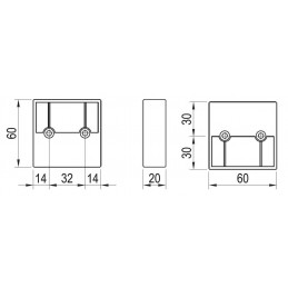 Nožička má pôdorys 60 × 60 mm a výšku 20 mm, čo z nej robí ideálne riešenie tam, kde je potrebné len mierne nadvihnutie nábytku. Montáž je možná pomocou skrutiek z hornej strany do korpusu nábytku, pričom montážne otvory sú pripravené podľa technického výkresu. Plastový materiál je ľahký, odolný a nenáročný na údržbu, chrómový povrch dodáva nožičke elegantný vzhľad.