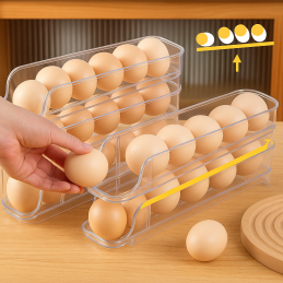 Vajcia sa automaticky posúvajú dopredu, keď jedno vyberiete – takže máte vždy jednoduchý prístup bez nutnosti otvárať obaly alebo premiestňovať vajcia.
