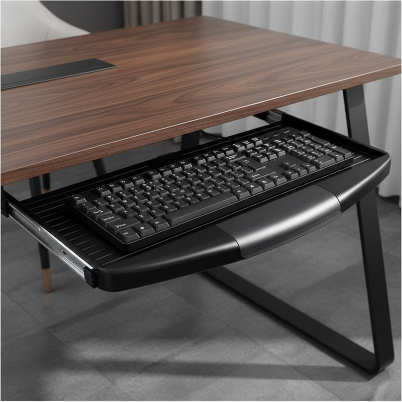Praktický a ergonomický výsuv pod klávesnicu v čiernom prevedení je ideálnym riešením pre kancelárske aj domáce pracovné stoly. Umožňuje pohodlné vysunutie klávesnice pod pracovnú dosku, čím šetrí miesto na stole a zlepšuje ergonómiu pri práci.