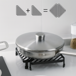 Štýlová a praktická rohová odkladacia polička je ideálnym doplnkom ku kuchynskej linke – najmä v priestore pri sporáku. Umožňuje bezpečné a pohodlné odkladanie horúcich panvíc, hrncov či kuchynského riadu bez rizika poškodenia pracovnej dosky.