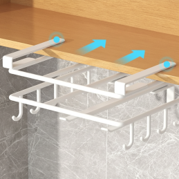 Praktický kovový držiak DRAFT v elegantnom bielom matnom prevedení je ideálnym riešením na organizáciu kuchynského priestoru. Jednoducho sa zasunie pod policu alebo spodnú skrinku, čím okamžite vytvorí nové úložné miesto – bez vŕtania a montovania.