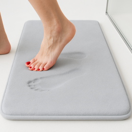 Kúpeľňová podložka SANTANA prináša do vašej kúpeľne dokonalé pohodlie a luxusný pocit pri každom dotyku chodidiel. Vďaka pamäťovej pene sa prispôsobí tvaru vášho chodidla a zabezpečí mäkký, teplý a príjemný pocit po každom kúpaní či sprchovaní.