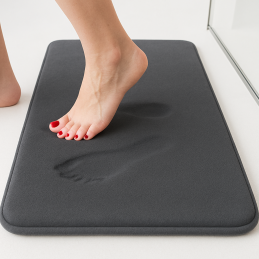Kúpeľňová podložka SANTANA prináša do vašej kúpeľne dokonalé pohodlie a luxusný pocit pri každom dotyku chodidiel. Vďaka pamäťovej pene sa prispôsobí tvaru vášho chodidla a zabezpečí mäkký, teplý a príjemný pocit po každom kúpaní či sprchovaní.