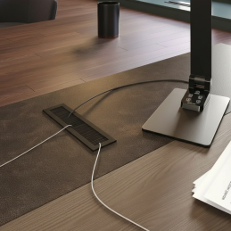 Prechodka MERIDA SHORT je praktickým a estetickým riešením pre moderné interiéry, kde je dôležitá čistota pracovného priestoru a organizácia kabeláže.