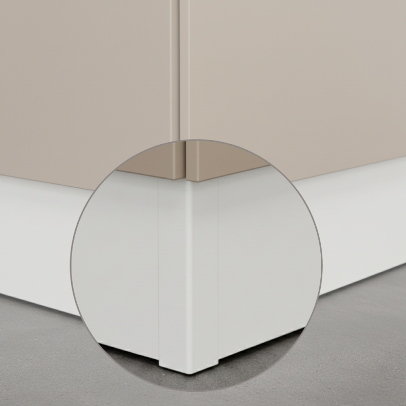 Rohová spojka slúži na spájanie kuchynských soklov pod uhlom 90°, čím vytvára čisté, pevné a estetické zakončenie v rohoch kuchynskej linky.