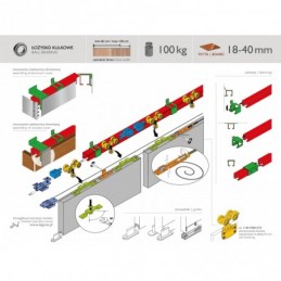 Celý systém je navrhnutý pre dvere s maximálnou hmotnosťou 100 kg a je vhodný pre dosky s hrúbkou 18 – 40 mm.