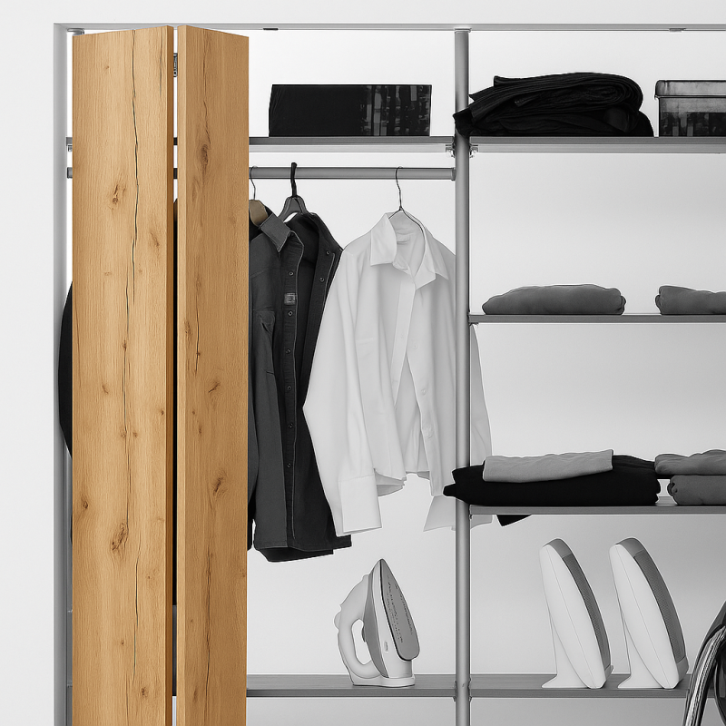 Priestorová úspora – ideálne pre malé miestnosti, šatníky, komory či technické priestory.