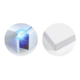 Hrany opáskované ABS hranou (1 mm) – spracované laserovou technológiou, ktorá zabezpečuje neviditeľný spoj medzi hranou a dvierkami.