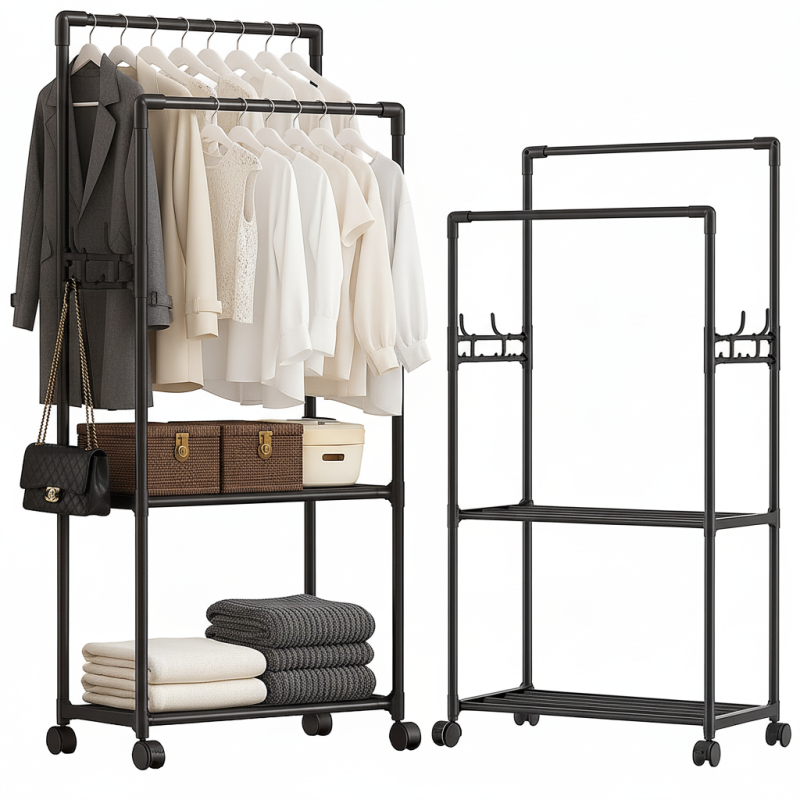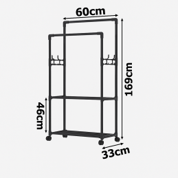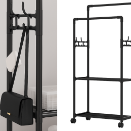 Jeho premyslená konštrukcia s dvoma tyčami na zavesenie oblečenia a dvoma priestrannými policami poskytuje maximálnu funkčnosť a pomáha udržať poriadok v každom priestore.