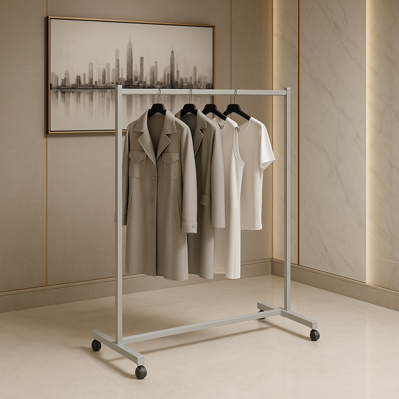 Vhodný do predsiene, šatníka, spálne, kancelárie či butiku. Okrem vrchného závesného priestoru ponúka aj spodnú odkladaciu poličku na topánky alebo doplnky.