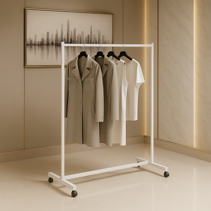 Vhodný do predsiene, šatníka, spálne, kancelárie či butiku. Okrem vrchného závesného priestoru ponúka aj spodnú odkladaciu poličku na topánky alebo doplnky.