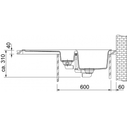 • Vonkajší rozmer drezu: 1000 × 510 mm