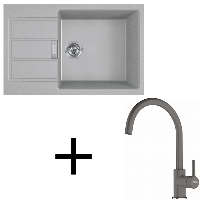 Set T124 Tectonitový drez Franke S2D 611-78 XL + Batéria FC 6018 / Šedá