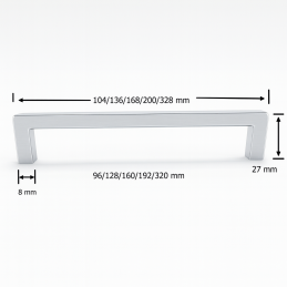 Úchytka ERON je dostupná v rôznych dĺžkach, aby ste ju mohli prispôsobiť každému typu dvierok alebo zásuviek.