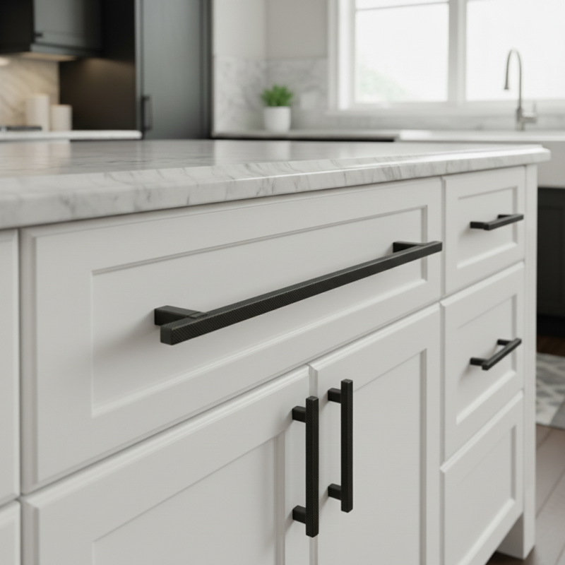 Čierna matná farba je mimoriadne obľúbená v modernom interiérovom dizajne, pretože elegantne kontrastuje s drevom, svetlými aj tmavými dekorami. V kombinácii s textúrovaným povrchom úchytky ZAIRA vzniká štýlový, nadčasový a veľmi estetický detail pre váš nábytok.
