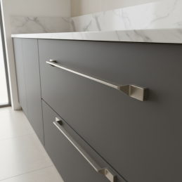 Úchytka VENITA v prevedení nikel matný kombinuje elegantný kovový vzhľad s čistým minimalistickým tvarom. Jej charakteristické bočné zalomenie dodáva úchytke dizajnový výraz, ktorý zvýrazní moderný aj klasický nábytok. Matný nikel pôsobí decentne, profesionálne a veľmi univerzálne – perfektne ladí s drevom, bielymi aj tmavými dekorami.