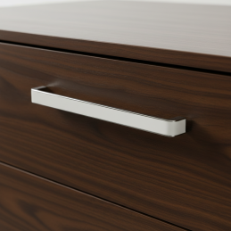 Úchytka je vyrobená z kvalitného kovu s povrchovou úpravou, ktorá zabezpečuje pevnosť, stabilitu a dlhú životnosť. Jednoduchý hranatý tvar ponúka pohodlný úchop a čisté línie.