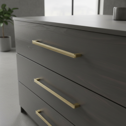 Zlatá matná farba je trendom v modernom interiérovom dizajne – poskytuje luxusný, ale pritom jemný akcent. Úchytka VELOS dodá nábytku exkluzívny vzhľad a zároveň poskytne maximálnu funkčnosť pri každodennom používaní.