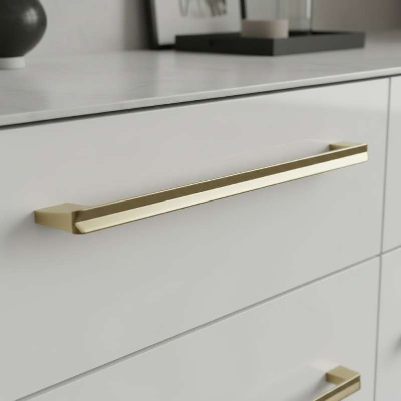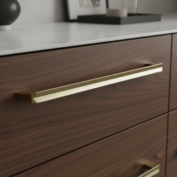 Úchytka VELOS v prevedení zlatá matná prináša do interiéru moderný minimalizmus v kombinácii s jemným nádychom luxusu. Jej predĺžený, štíhly tvar pôsobí elegantne a nadčasovo, zatiaľ čo matná zlatá povrchová úprava dodá nábytku exkluzívny, no stále veľmi vkusný vzhľad. Perfektná voľba pre moderné kuchyne, dizajnové komody, šatníky či vstavané skrine.