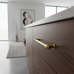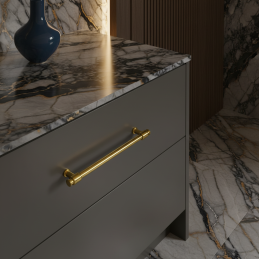 Elegantná kovová úchytka v luxusnom zlatom lesklom prevedení, ktorá dodá nábytku nadčasový a reprezentatívny vzhľad. Vhodná do kuchýň, kúpeľní, šatníkov, komôd aj iného interiérového nábytku v modernom aj klasickom štýle.