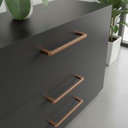 Štýlová úchytka BRISA v povrchovej úprave medená je výnimočným dizajnovým doplnkom pre nábytok v modernom, industriálnom aj vintage štýle. Teplý medený odtieň dodáva skrinkám či komodám unikátny charakter a zaujímavý vizuálny akcent, ktorý krásne vynikne na tmavom dreve, čiernom nábytku aj svetlých plochách. Minimalistický tvar s jemne zaoblenými hranami...