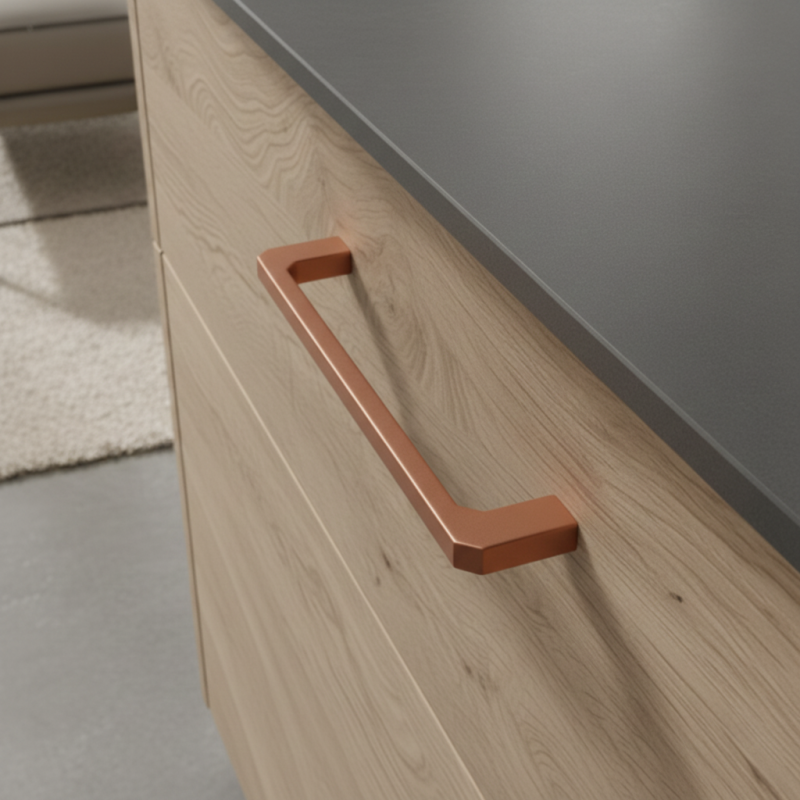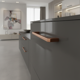 Úchytka SVOOP v povrchovej úprave medená matná spája minimalistický tvar s trendovým farebným prevedením, ktoré dodá nábytku elegantný, moderný a zároveň útulný charakter. Jej čisté línie a jemne skosené hrany pôsobia sofistikovane, zatiaľ čo matná meď prináša príjemnú hrejivú atmosféru do každého interiéru. Skvele sa hodí ku kuchynským linkám,...