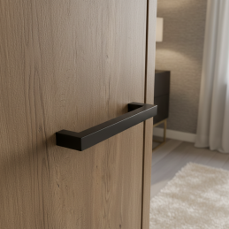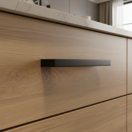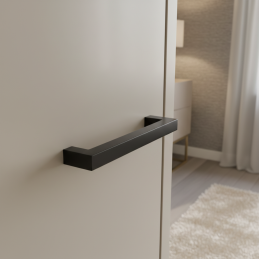 Moderná nábytková úchytka ZETA v čiernom matnom prevedení je ideálnym doplnkom pre minimalistické, industriálne aj moderné interiéry. Jej rovné línie a hranatý tvar pôsobia čisto a elegantne, pričom matný povrch dodáva nábytku nadčasový a prémiový vzhľad.